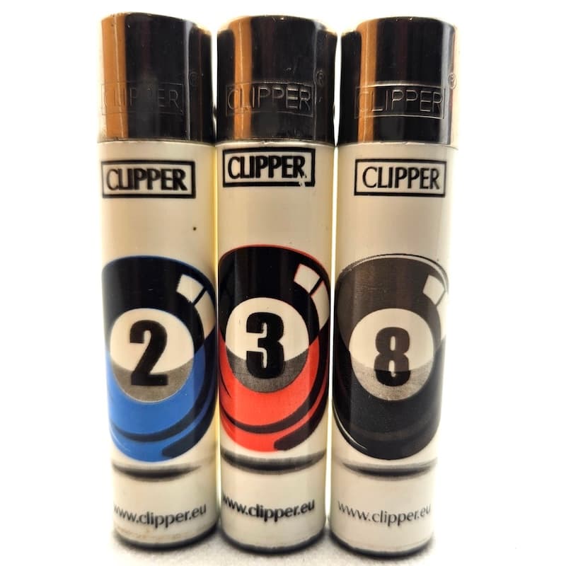 Clipper Lighters Billiards edition numbers 2,3,8 made in Spain. Discover the Clipper Lighters BilliardsEdition, a must-have for the best Clipper lighter collectors. These high-quality Clipper lighters are made in Spain and designed for true enthusiasts. This exclusive set includes three collectible Clipperbilliardslighters (without gas), perfect for those who appreciate unique and rare Clipper editions. Don’t miss the chance to add them to your Clipper lighter collection!