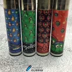 Cuatro mecheros Clipper de estampados originales de Los Cogollitos. Fabricados en España. Se vende lo que se muestra en fotos. SIN GAS (Recargables). Flamagas S.A