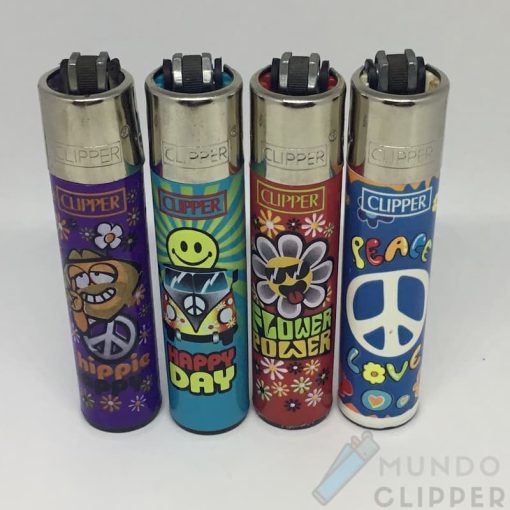 Serie 4 mecheros Clipper originales estilo Hippie. Made in Spain.